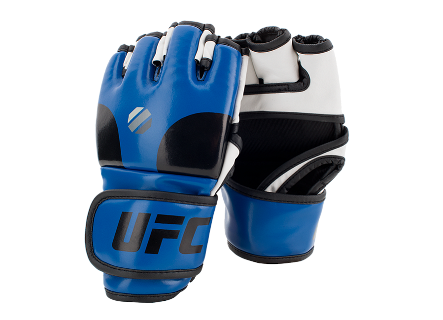 Тренировочные перчатки UFC имеют открытую конструкцию ладони, что позволяет значительно увеличить ловкость и диапазон движения, что важно для грэпплинга. Конструкция перчаток выполнена из долговечной синтетической кожи, удобная застежка на липучке имеет регулируемую форму. Для максимального удобства при занятиях грепплингом предусмотрены мягкие отсеки для пальцев. Дополнительной защитой рук служит многослойная пена в области удара.
