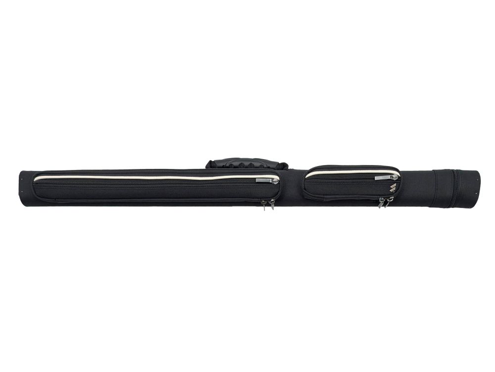 Есть ручка сбоку и наплечный ремень с регулировкой длины. На ремне есть специальная вставка для комфортной носки на плече. Каждая часть кия хранится в отдельном отсеке. С внешней стороны имеются карманы для аксессуаров и удлинителя.
