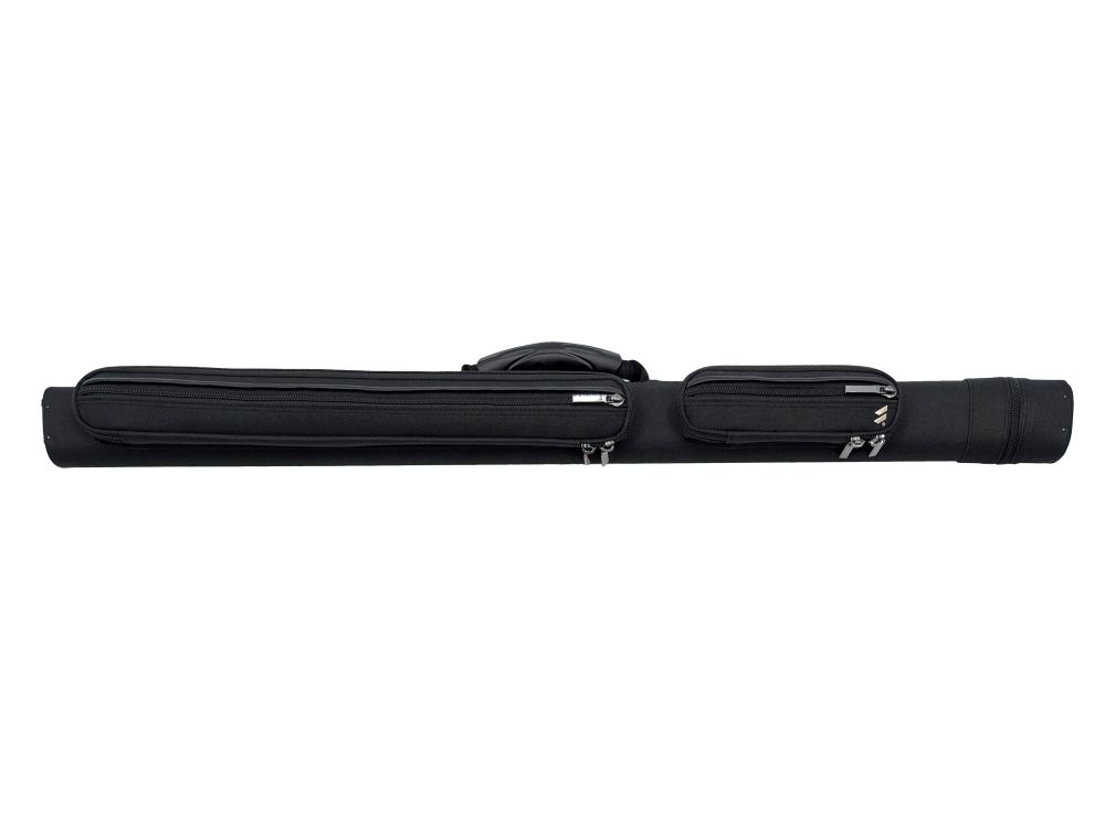 Есть ручка сбоку и наплечный ремень с регулировкой длины. На ремне есть специальная вставка для комфортной носки на плече. Каждая часть кия хранится в отдельном отсеке. С внешней стороны имеются карманы для аксессуаров и удлинителя.