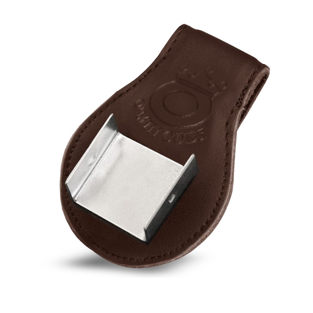 Держатель выполнен из кожи коричневого цвета, мел помещается в металлический кейс отрытого типа, который плотно крепится к основе. Благодаря компактному размеру такой держатель можно легко разместить на кармане или ремне брюк и всегда иметь доступ к девайсу.