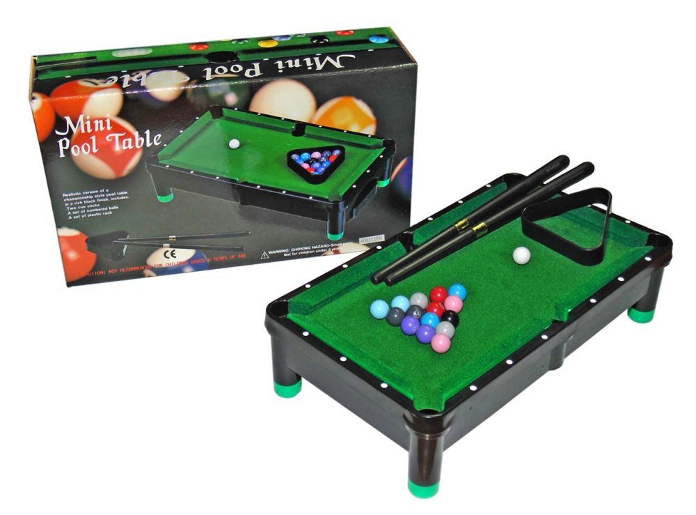 Забавный, практически карманный стол для игры в пул поднимет настроение и несомненно станет объектом внимания детей и взрослых.