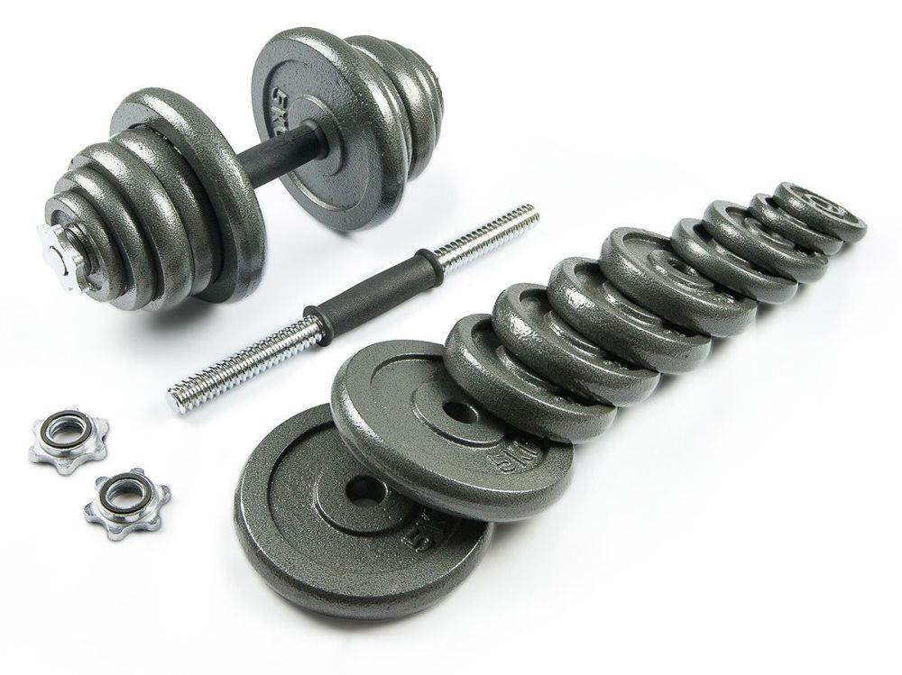 Гантели состоят из сплава стали (никель и сталь) и долговечные чугунные пластины. Они дополнительно оснащены рифлеными ручками, которые защищают от скольжения во время тренировки гантелей. Представленный набор металлических гантель включает: