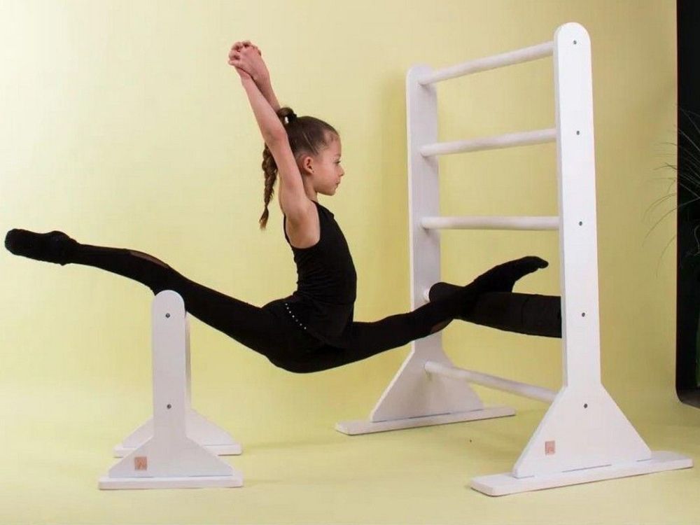 - Станок для растяжки шпагата из дерева, состоящий из двух независимых напольных мини-шведских стенок:
