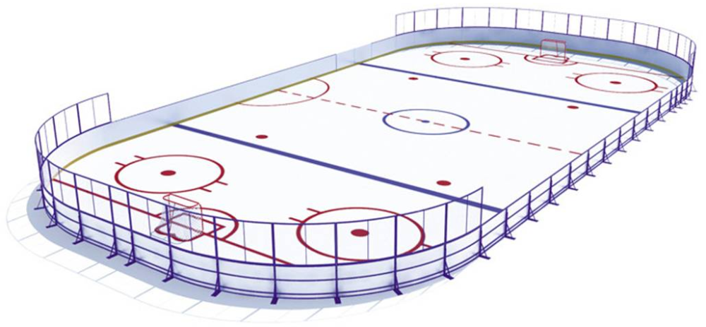 - Цвет (а): цвет стеклопластика – белый, с глянцевой поверхностью. Набор толщины стеклопластиковых панелей осуществляется стеклотканью физико-механические показатели прочности). Вся металлоконструкция хоккейного корта окрашена полимерным покрытием (ral 5005)