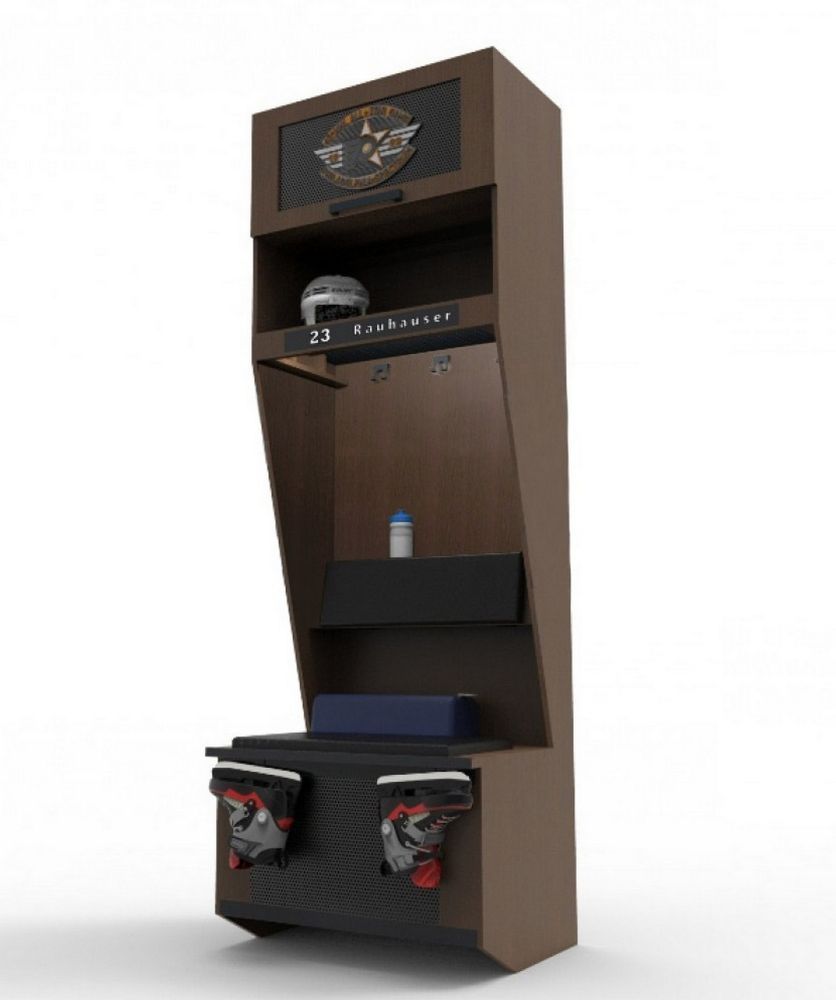 Вместительный ящик для хранения экипировки расположен под сиденьем. Верхняя часть места хоккеиста оснащена полками для размещения касок, рукавиц и любой хоккейной амуниции. Ниже располагается планка с 3-мя крючками для размещения хоккейной формы.