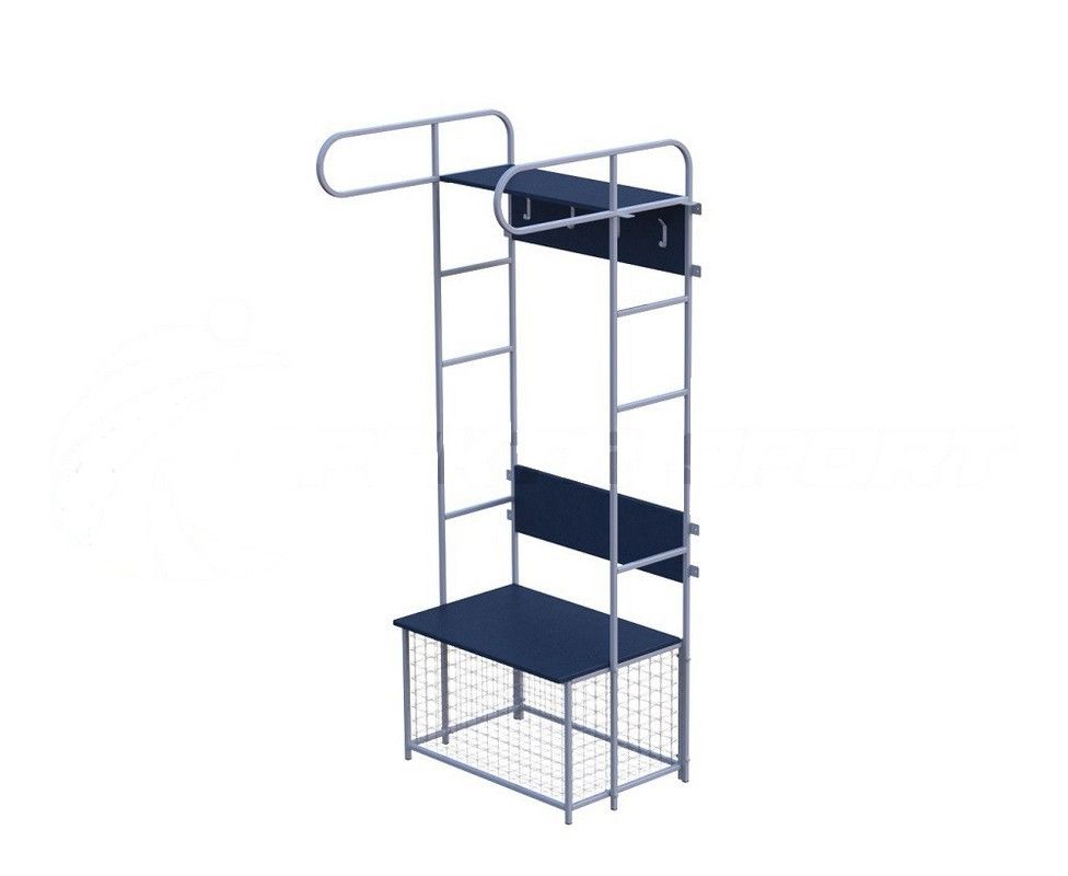 - Материал полки и вешалки с крючками: ЛДСП толщиной 16 мм. Полка оснащена четырьмя двойными крючками для одежды.