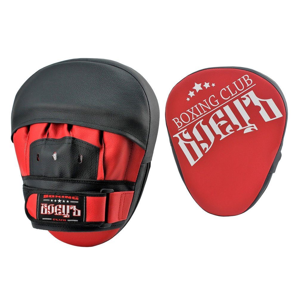 Лапы боксерские гнутые Боецъ 111 черный-красный