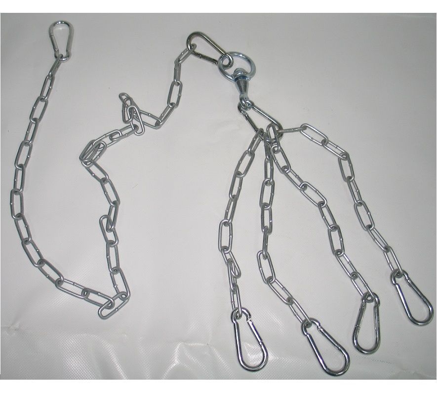- 1карабин+цепь 1м+карабин+шарнир-вертлюга+карабин+4 цепочки по 25см+4карабина