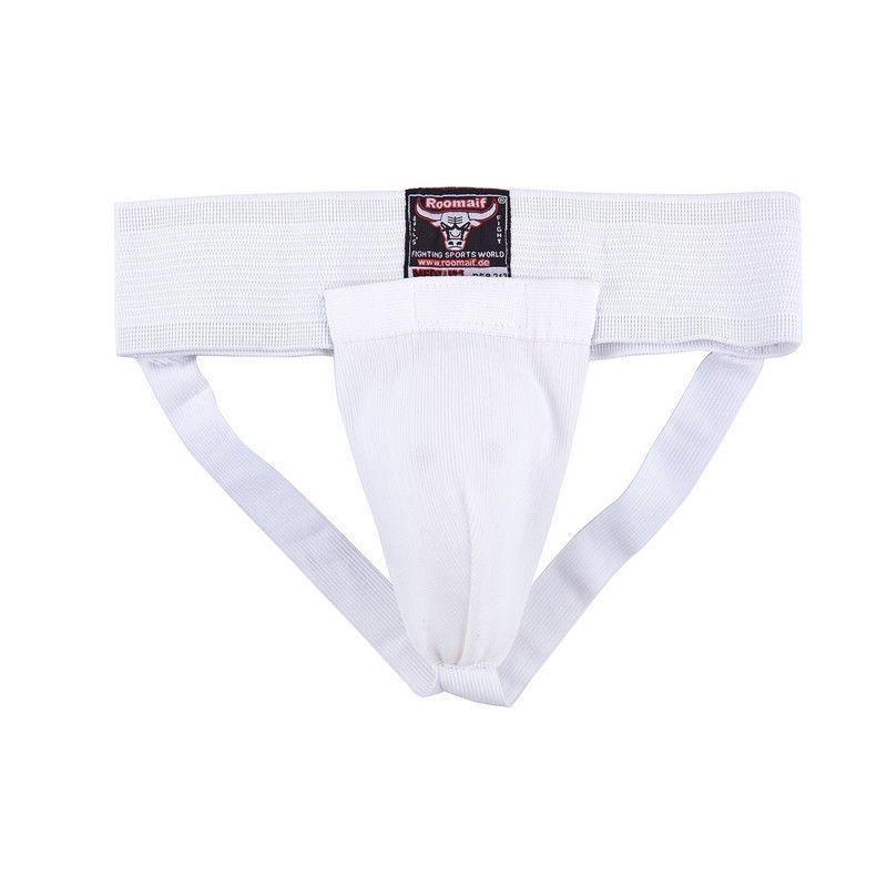 Бандаж крепится на широкой резинке, что позволяет быстро снимать и одевать защиту.