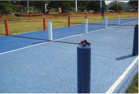 Препятствие представляет из себя пять эластичных «проводов» (эспандеров) яркой окраски, натянутых с интервалом 2,0 м над землёй.