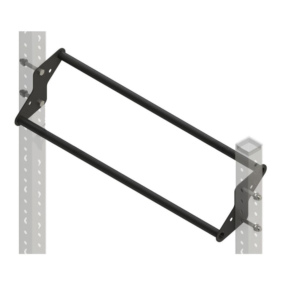 Перекладина устанавливается между 2мя опорными стойками, она имеет 2 перекладины с разницей в 20см. Таким образом она экономит и место, и служит за место 2-ух перекладин.