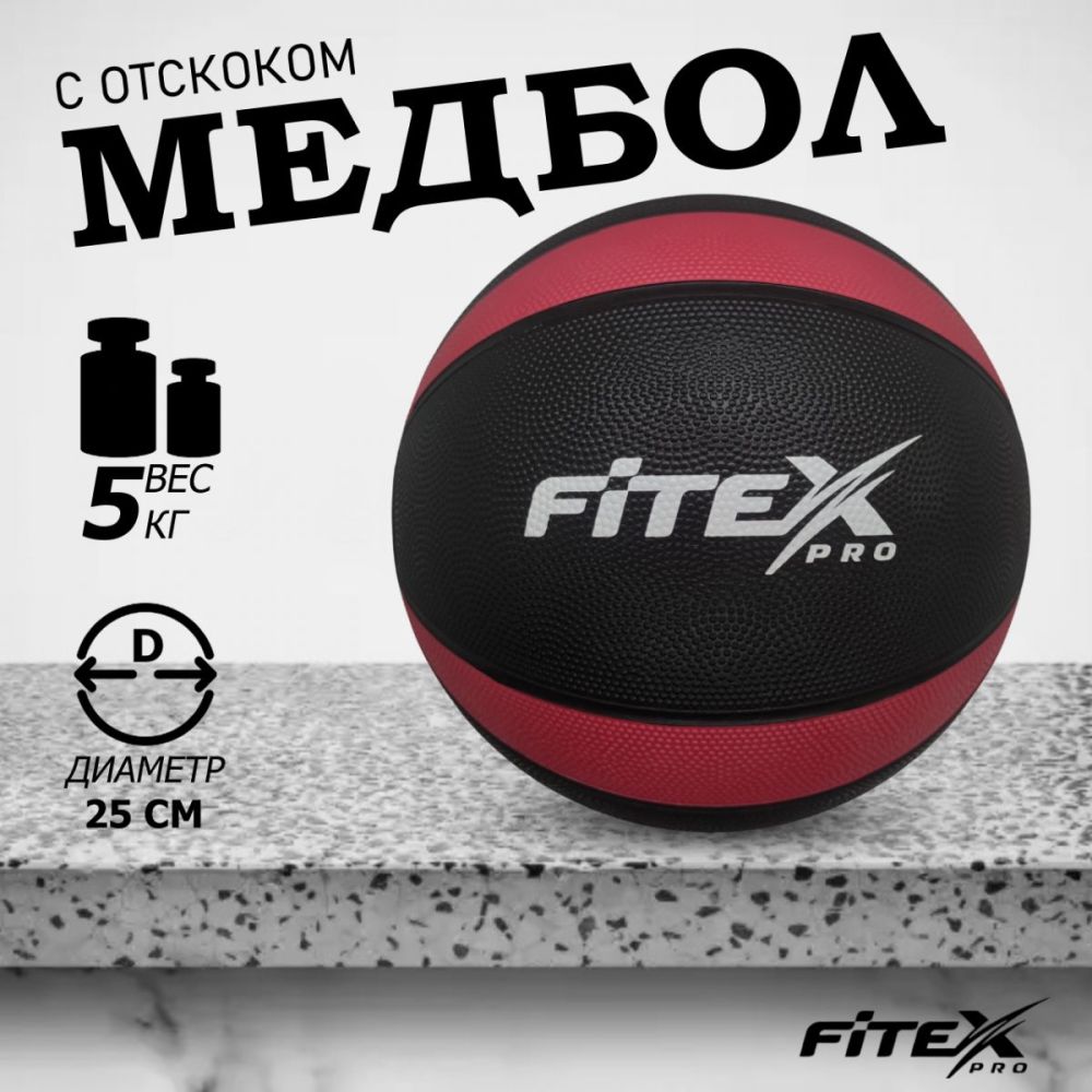 Медицинский мяч 5 кг, черный с красным FITEX PRO
