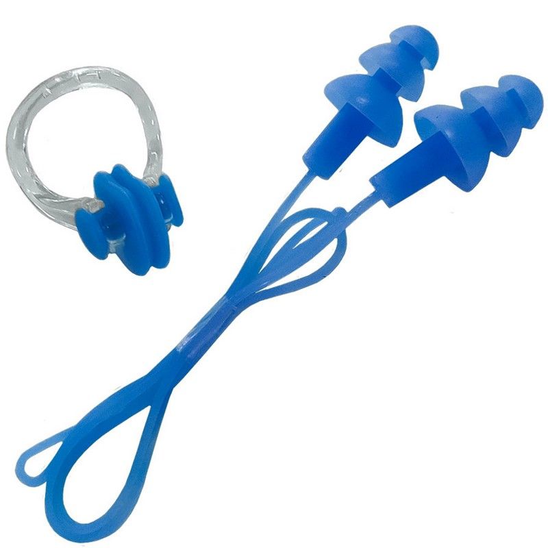 Набор для плавания беруши на шнурке и зажим для носа Sportex B31576 синий
